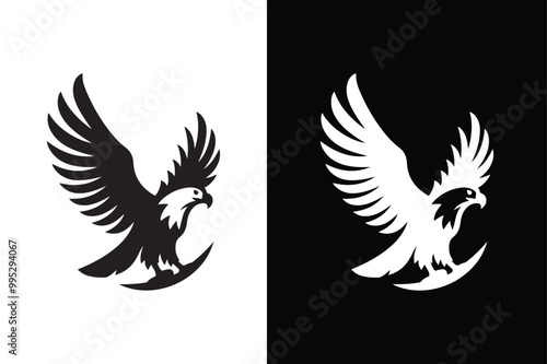 Majestic American Eagle in Flight. Vector Illustration and Silhouette