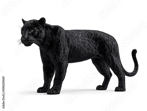 Majestic Black Panther: 3D Render on White Background. AI Generated