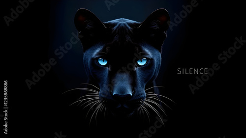 Majestic Black Panther Portrait Dark Background Glowing Blue Eyes Wildlife Photography Night Vision Animal Art