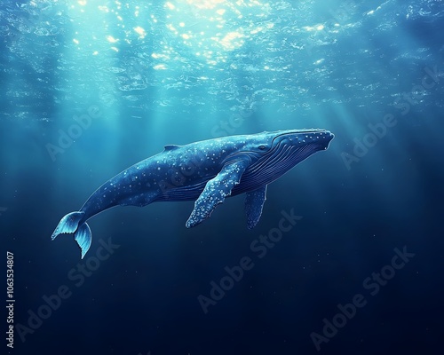 Majestic Blue Whale Swimming Through the Depths of the Ocean