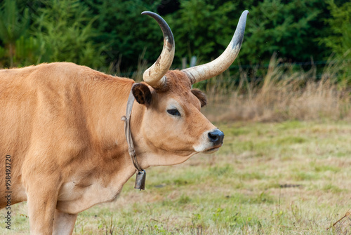 Majestic Cachena Cow with impressive horns in a field