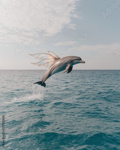 Majestic Dolphin Leaping from the Sea, Magical Creature with Fairy Wings, Fantasy, Ocean Blue