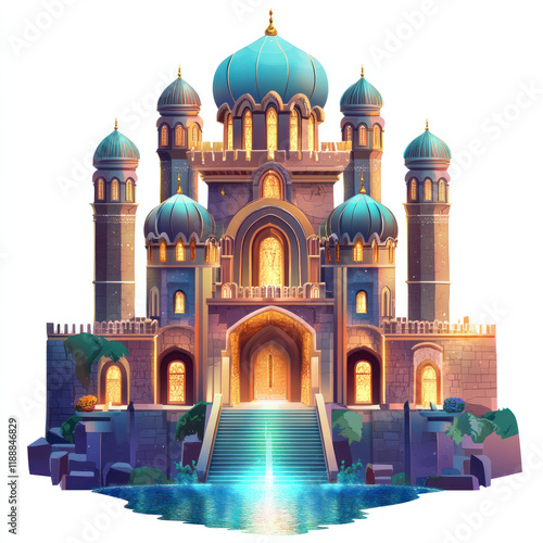Majestic Fantasy Palace with Blue Domes