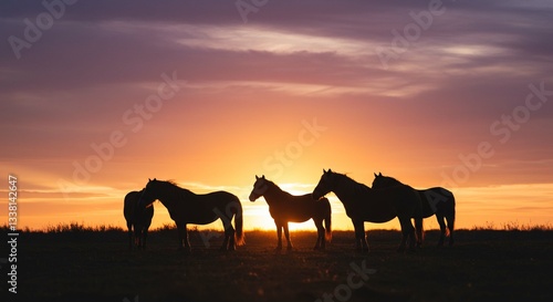 Majestic Horses Silhouetted Against a Vibrant Sunset Landscape
