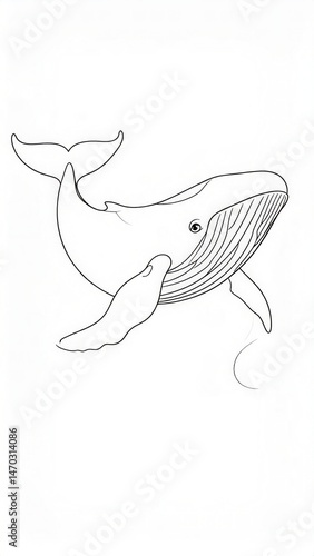 Majestic Humpback Whale Swimming Gracefully Awaiting Color Illustration For Children's Book