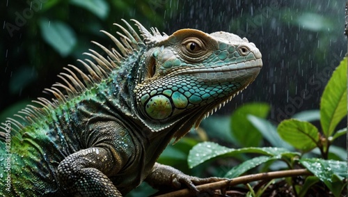 Majestic Iguana in a Rainforest Habitat: Nature's Exotic Beauty
