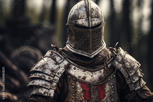 Majestic Medieval Knight in Full Armor on Horseback, Ready for Battle with Sword and Shield – A Powerful Symbol of Chivalry and Honor from the Middle Ages. Historic. Book.