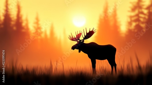 Majestic Moose Silhouette Against Vibrant Sunset in Woodland Landscape