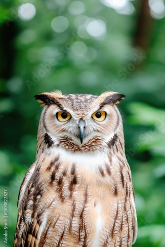 Majestic owl gazes intensely, showcasing intricate feather patte