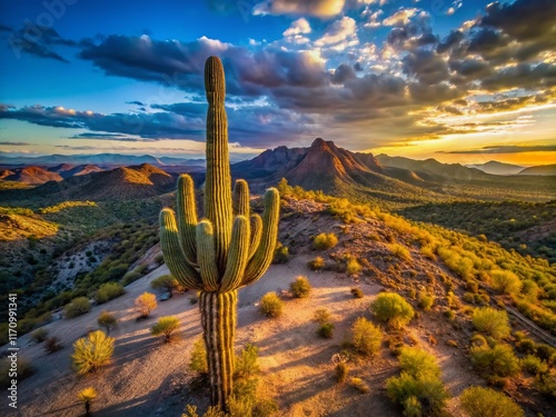 Majestic Sequoia Cactus in Desert Landscape - Aerial Drone Shot