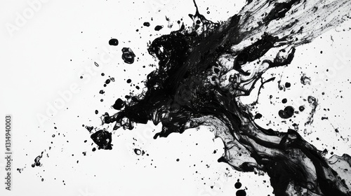Majestic tendrils of black ink flow and disperse, creating a striking contrast against a bright white canvas. The movement captures the essence of creativity and chaos