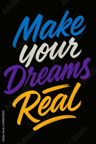 Make Your Dreams Real Inspirational Hand Lettered Quote Motivational Typography Design for Print