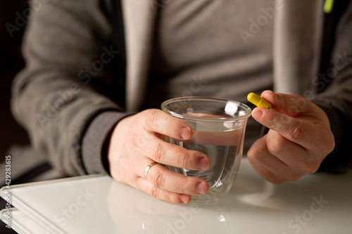 Male hand with multivitamin pill