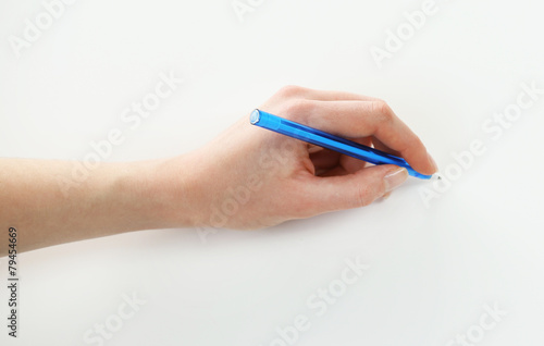 Male hand with pen isolated on white
