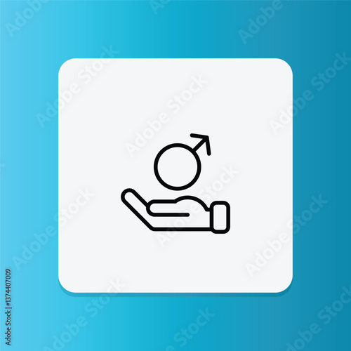 Male health care icon in thin line style. Hand holding the male gender symbol. Men's health and wellness concept