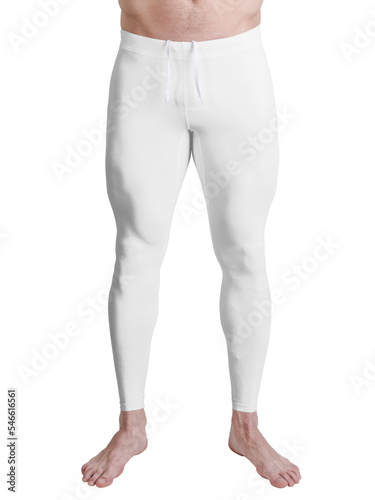 Male legs in white sports leggings. Mock-up. Png.