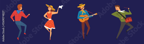 Man and Woman Country Dancer Moving Body Vector Set