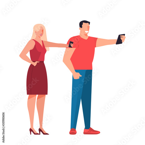 Man and woman with mobile phone. Female and male