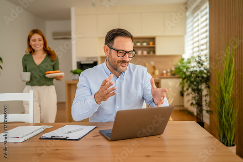 Man enjoying video call working from home