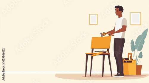 Man Fixing Furniture with Toolbox in Bright Room