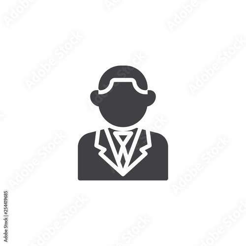 Man in suit with necktie vector icon. filled flat sign for mobile concept and web design. Businessman glyph icon. Faceless people avatar symbol, logo illustration. Pixel perfect vector graphics