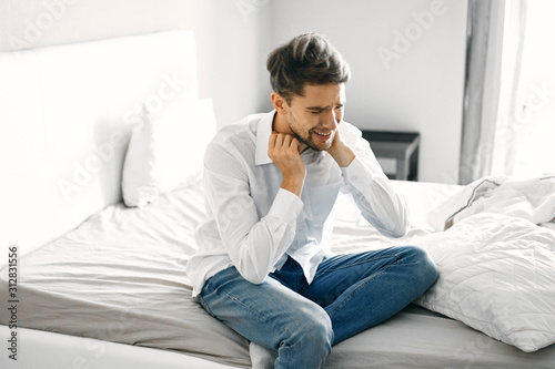 man sitting on sofa at home