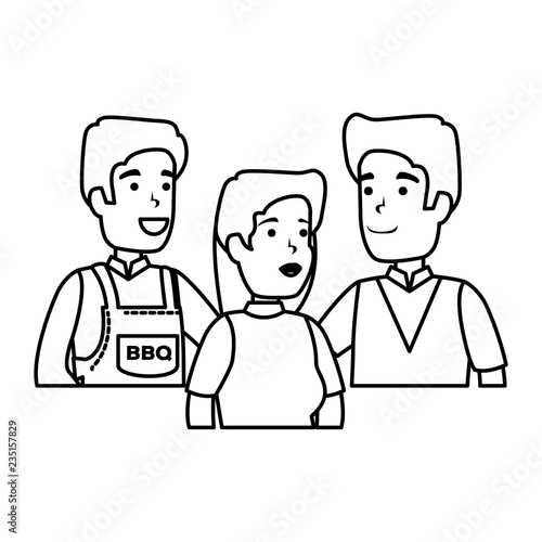 man with bbq apron and friends