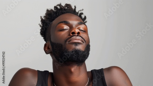 Man with curly hair enjoying a moment of peace and relaxation in a natural light setting