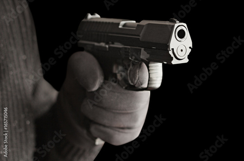 man with hand gun pistol rubber attack violence