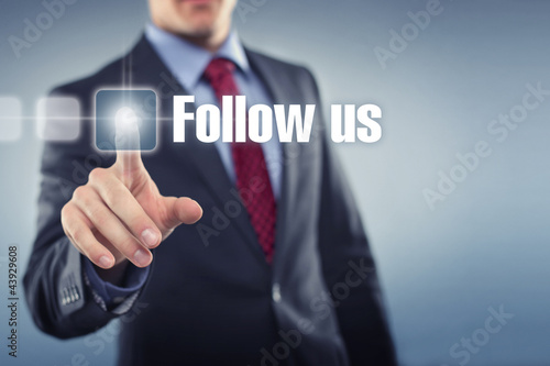 Man with Touchscreen Follow us