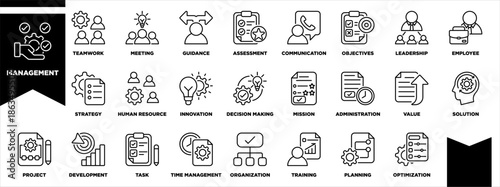 Management Icon Set Line Black