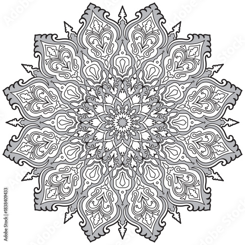 Mandala flower, black and gray, decorative flowers