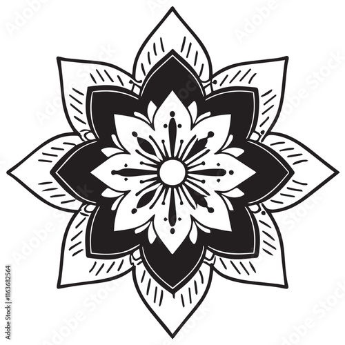 Mandala flower design for tattoo, henna, coloring book