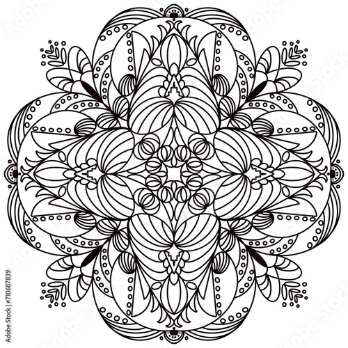 Mandala flower. Oriental pattern outline. Abstract. Line mandala. Mandala white background. Line drawing for coloring, meditation, relaxation. Coloring book illustration. Mandala doodle elements.