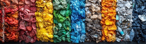 Many different colored bags of paper hanging on a wall waste reduction--refusing single-use plastics banner
