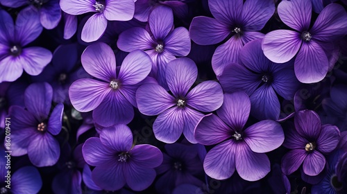 Many Violet flowers bouquet wallpaper. A close-up view of a cluster of vibrant purple flowers with delicate petals and intricate details. Full screen filled.