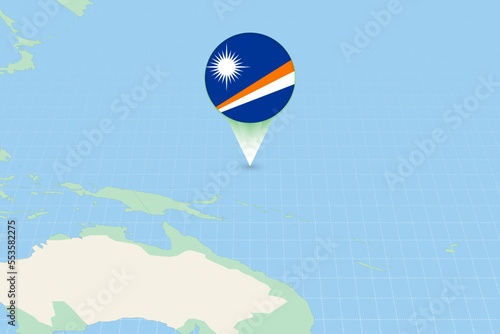 Map illustration of Marshall Islands with the flag. Cartographic illustration of Marshall Islands and neighboring countries.