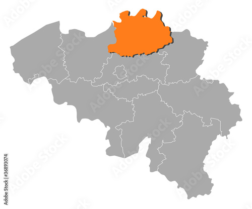 Map of Belgium, Antwerp highlighted