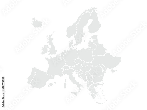 Map of Europe.for website layouts,background,education, precise,customizable,Travel worldwide,map silhouette backdrop,earth geography, political,reports. Grayscale style ,isolated on white background.