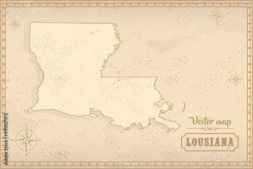 Map of Louisiana in the old style, brown graphics in retro fantasy style