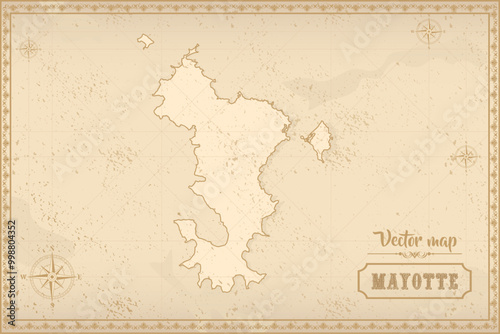 Map of Mayotte in the old style, brown graphics in retro fantasy style