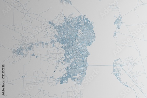 Map of the streets of Maracaibo (Venezuela) made with blue lines on white paper. 3d render, illustration