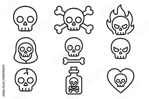 Map pin icon collection, line art style, outline location markers, navigation symbols for graphic design, web apps, advertising, vector cartoon set with transparent background