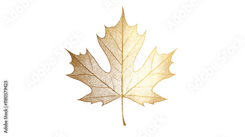 Maple leaf in elegant golden line art with detailed veins isolated on white background