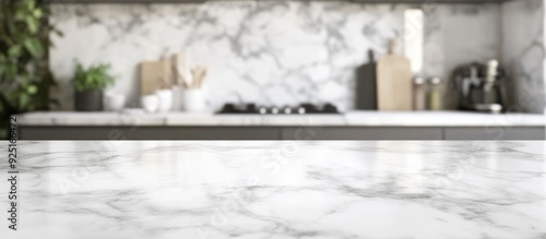 Marble Kitchen Countertop with Blurred Background