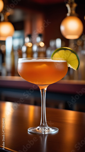 margarita cocktail with lime stands on the bar counter in a nightclub, generative AI