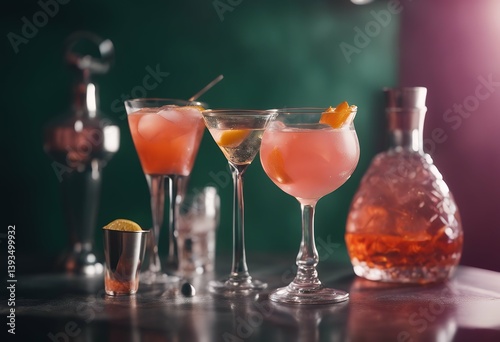 margarita strong alcoholic spritz dark vodka lady fashioned bar cocktail light green background old aperitifs tools martini drinks bottles glasses hard set cocktails pink aperol drink orange party