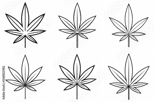 Marijuana Leaf Outline Coloring Page - Line Art Drawing Set on White Background