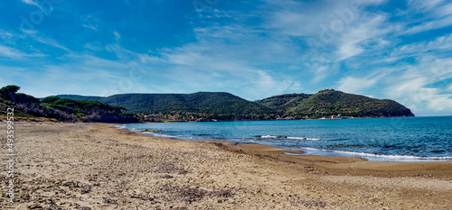 Marine panorama from the beach of Baratti Piombino Tuscany Italy