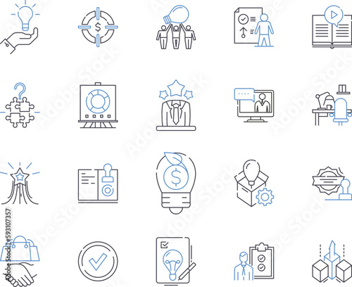 Marketing and concept outline icons collection. marketing, concept, strategy, planning, segmentation, targeting, positioning vector and illustration concept set. differentiation, value, proposition